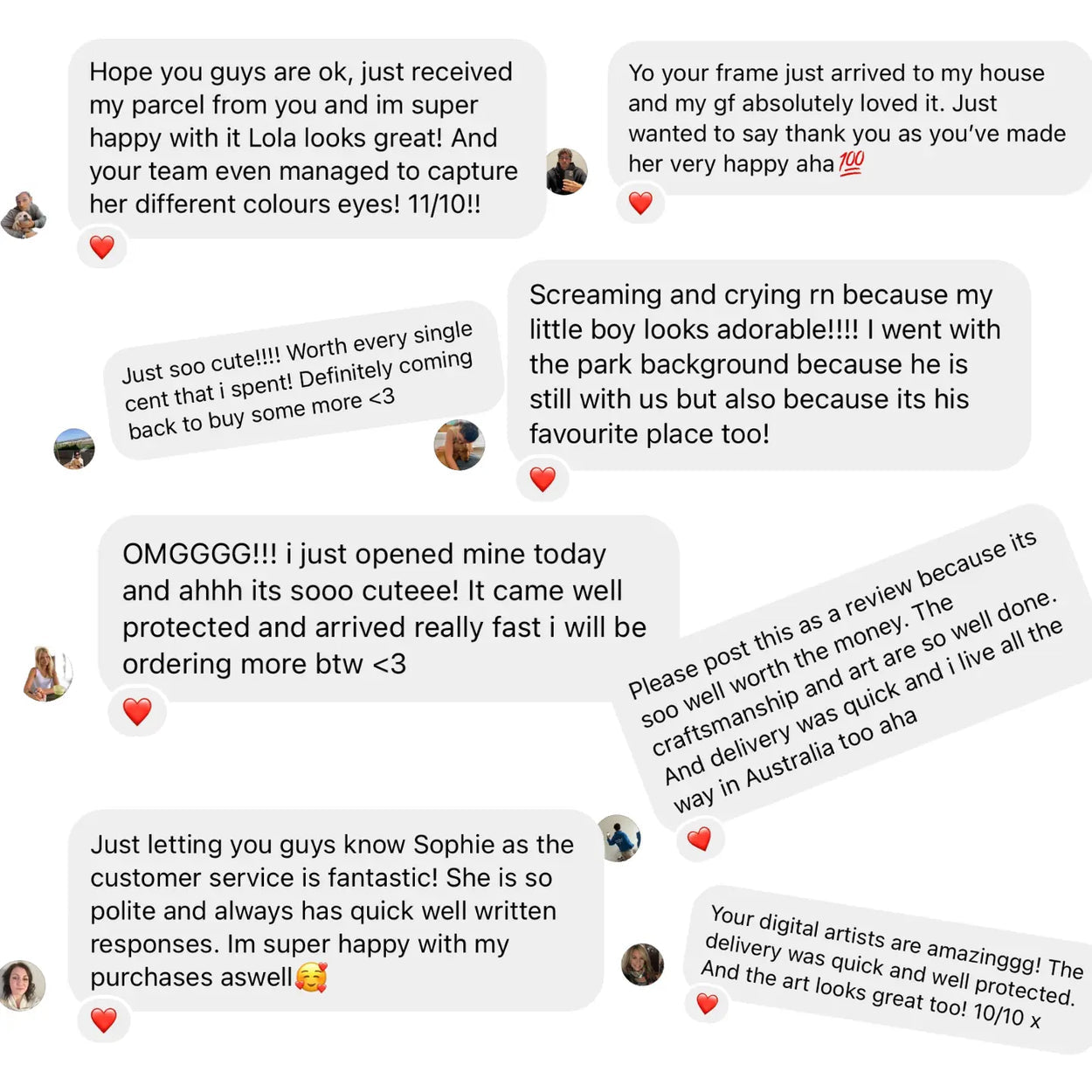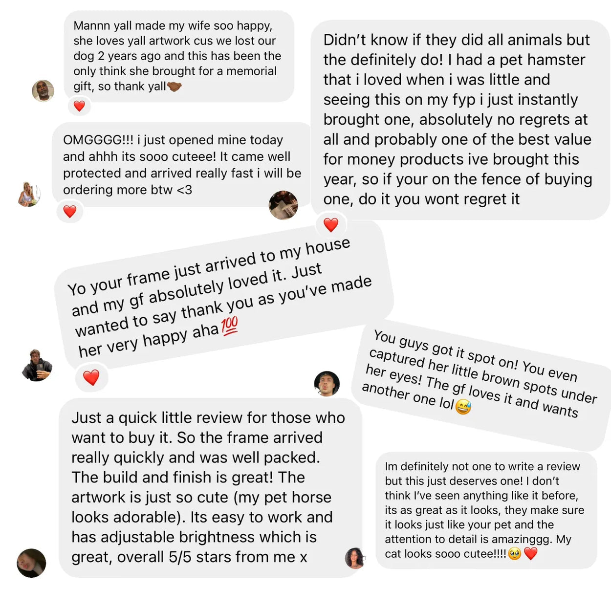 We want you to be 100% confident and overjoyed with the final print. That's why we offer free previews and unlimited edits for all orders. Our commitment to ensuring your satisfaction knows no bounds. We'll work closely with you, making any necessary adjustments until your pet's portrait surpasses your expectations and we have you giving us a jaw-dropping reaction.